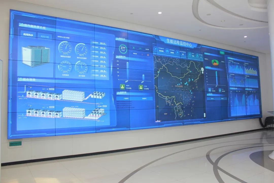 With the assistance of large cranes, the 12 units of heat pumps were impeccably arranged in the open space outside the building. Hien supervisors closely supervised and guided the installation process, ensuring that every detail adhered to standardized installation procedures. In addition, Hien’s remote control center can monitor the units’ operation in real-time, enabling timely and effective maintenance, which provides better support for the stable operation.