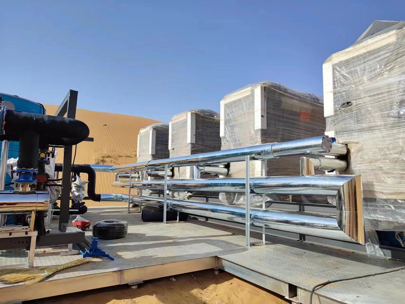 In fact, Hien took the lead in installing air source heat pump units in Alashan Desert, Inner Mongolia, as early as 2018. Hien was the only one who had the courage and confidence to install air source heat pump units in the desert at that time. Up to now, five years have passed, and Hien’s air source heat pump ultra-low temperature cooling and heating units and water heaters have been running stably in the desert. After the severe test of harsh environment, Hien heat pump successfully conquered the desert!
